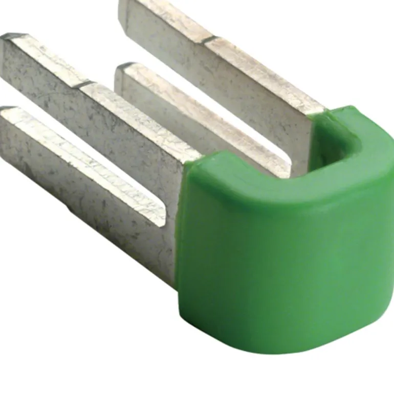 Vihreä yhdyssilta maaliittimien yhdistämiseen. Tuotteen etuna on se, että liitinlohko on pieni ja helppo napsauttaa kiinni pikaliittimeen, jolloin saadaan optimaalisen liitäntä varmalla ja nopealla asennuksella.