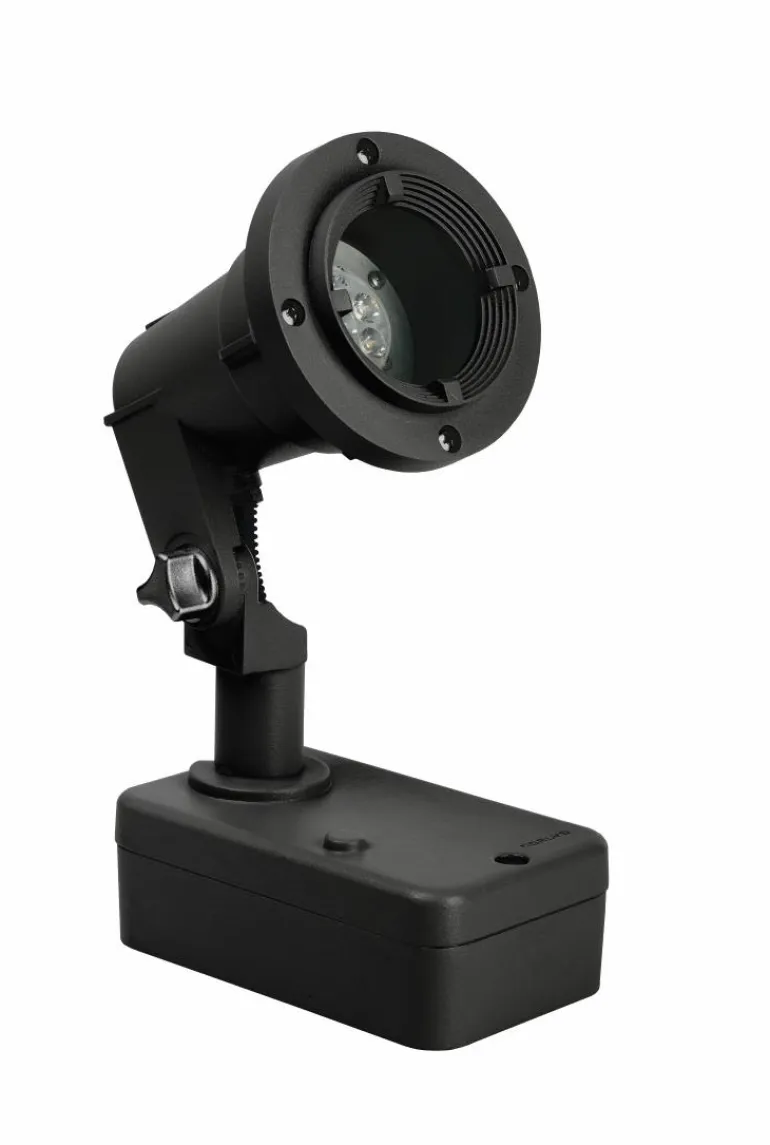 Kohdevalaisin valettua alumiinia maiseman ja kylttien valaisuun. Säädettävä kallistuspää. Sisältää kytkentärasian.