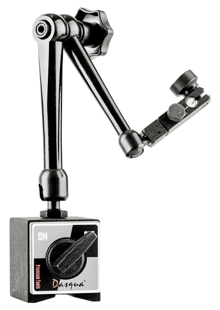 Dasqua 495193 on magneettijalusta pallonivelellä varustetulla kiinnitysvarrella. Jalustan kolmiosaisessa varressa kolme yksilöllisesti säädettävää niveltä. Kiinnitysreikä 8 mm, mukaan kuuluu myös 6 mm:in adapteri tai lohenpyrstöura.