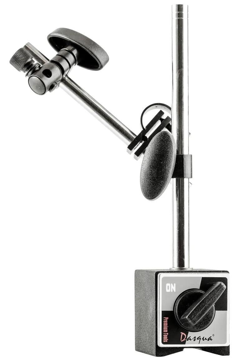 Dasqua 495191 on magneettimittausjalusta hienosäädöllä, jonka kapasiteetti 80 kg. Vaaka- ja pystysuoraan lukitukseen. Korkealuokkainen magneetti ja magneettijalassa On/Off-painike. Jalan pohjan muodon ansiosta voidaan myös kiinnittää pyöreälle pinnalle.