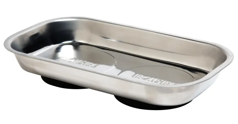 Ruostumatonta terästä, varustettu kahdella voimakkaalla magneetilla. Kumipinnoitettu takasivu ei vahingoita maalipintoja. Ruuvien, mutterien jne. säilytykseen työn aikana.
