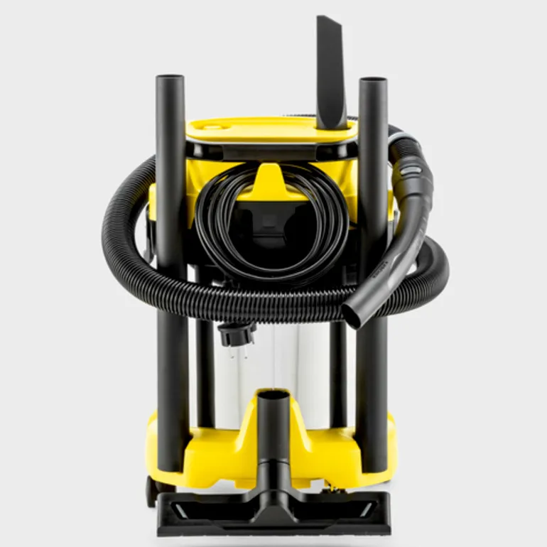 Kärcher WD 3 S karkeaimuri on vahva ja energiatehokas, ja sen tehontarve on vain 1 000 wattia. Kone, imuletku ja napsauttamalla kiinnitettävä lattiasuutin sopivat optimaalisesti yhteen parhaiden puhdistustulosten saavuttamiseksi, olipa kyse sitten kuivasta, märästä, hienosta tai karkeasta liasta. Märkä- ja kuivaimuri tekee vaikutuksen kompaktilla rakenteellaan ja vankalla, ruostumattomasta teräksestä valmistetulla 17 litran säiliöllä, 4 metrin verkkojohdolla, 2 metrin imuletkulla ja fleece-suodatinpussilla. Patruunasuodattimen ansiosta sekä märkää että kuivaa likaa voi imuroida ilman suodattimen vaihtoa. Puhallustoiminto on hyödyllinen vaikeapääsyisten alueiden puhdistuksessa. Letkua säilytetään ripustettuna koneen päällä, mikä säästää tilaa. Työkaluja ja pieniä osia voi myös säilyttää koneen päällä. Verkkojohtoa voi säilyttää johtokoukussa ja pölynimurin putkea ja lattiasuuttimia puskurissa. Pull & Push lukitusjärjestelmä helpottaa säiliön avaamista ja sulkemista. Pölynimurin kahvan voi irrottaa ja lisävarusteet voi kiinnittää suoraan imuletkuun. Laitetta on kätevä kuljettaa ergonomisesti muotoillun kantokahvan ansiosta.