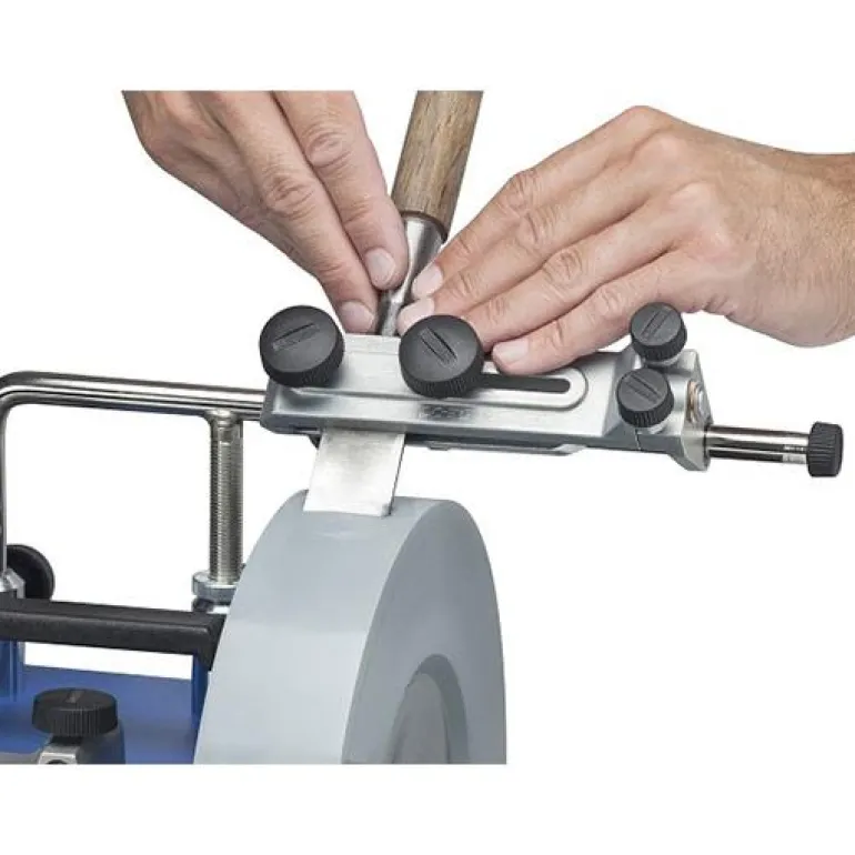 - Pääakseli, jonka tapit ja EzyLock-mutterit ovat ruostumatonta terästä, helpottaa hiomakiven vaihtamista