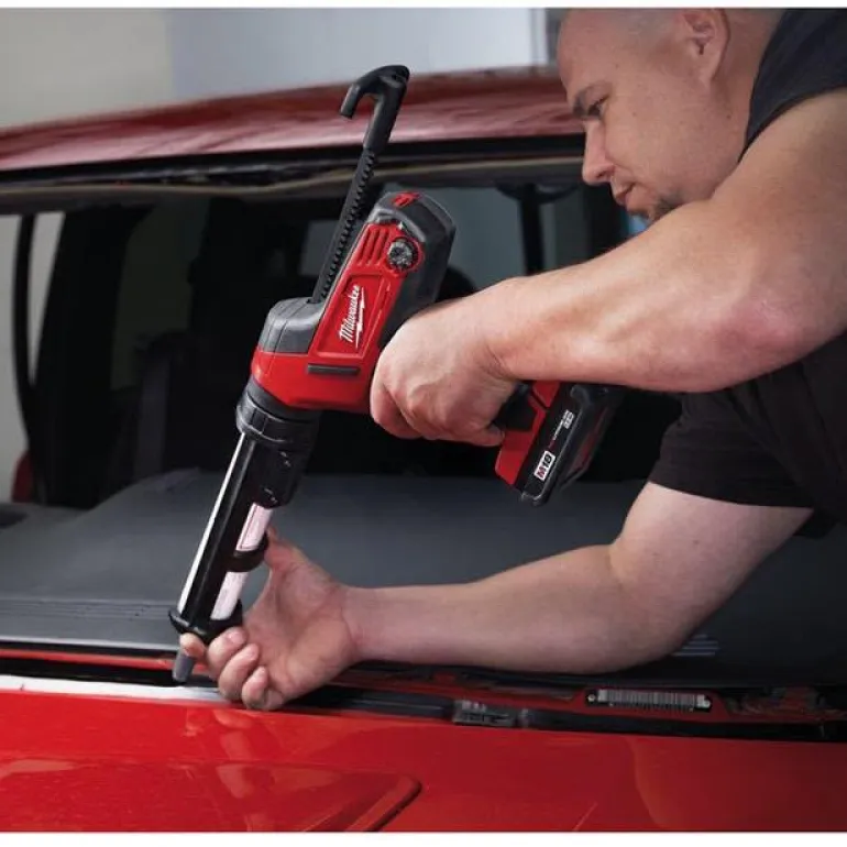 Milwaukee C18 PCG/310C-201B on 18 V:n massapuristin, jossa on pidike 310 ml:n vakioputkilolle. Kuusi nopeusasetusta ja työntövoima jopa 4 500 N.