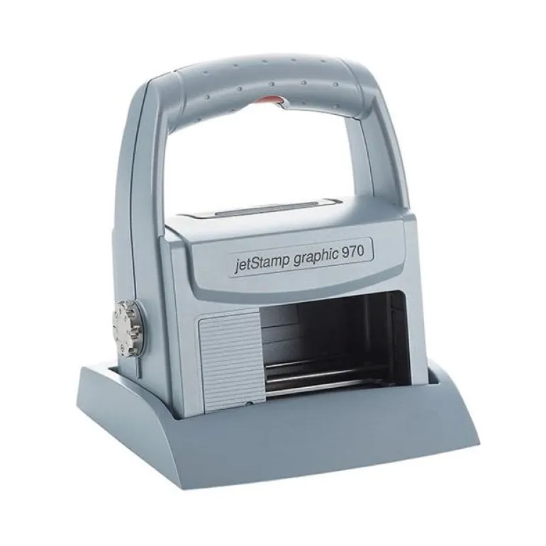 JetStamp Graphic 970 on kannettava mustesuihkutulostin, jonka avulla asiakirjat tai tuotteet voidaan merkitä nopeasti ja helposti. Numeroiden, päivämäärien, kellonaikojen ja tekstin lisäksi tämä laite voi tulostaa myös kuvia ja viivakoodeja. MP-musteella on mahdollista tulostaa myös imukyvyttömille pinnoille, kuten metallille ja muoville. JetStamp 970 on kätevä sekä helppo käyttää ja ohjelmoida. Mukana toimitetaan ohjelmisto, paino alle ½ kg.