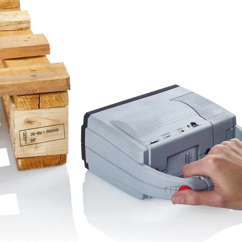 Reiner JetStamp 1025 on siirrettävä elektroninen merkintälaite, joka on ihanteellinen tulostamiseen suuremmille pinnoille, kuten kuormalavoille, ja materiaaleille, kuten pahville, metallille, muoville, tekstiileille, puulle ja paperille. Laite voi tulostaa viivakoodeja, QR-koodeja, päivämääriä, kellonaikoja, tekstiä, numeroita ja logoja, kuten IPPC-logo. Valitse kahdesta eri mustetyypistä (mustesuihku):– MP-muste mahdollistaa kirjoittamisen ei-huokoisille (imukyvyttömille) materiaaleille, kuten metallille ja muoville. Paperin, pahvin, puun ja muiden huokoisten materiaalien osalta käytä tavallista mustepatruunaa. Tuloste luodaan tietokoneelle ohjelmiston avulla ja siirretään sitten USB:n, Bluetoothin tai Micro-SD-kortin kautta.