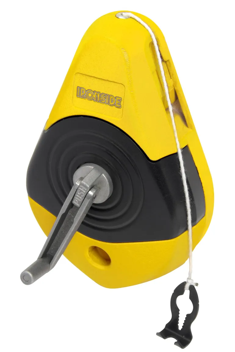 Iskunkestävä kotelo maalattua valettua magnesiumia. 30 m polyesternauha. Nopea takaisinkelaus viisinkertaisella vaihteella, helppo liidun täyttö. Taittuva veivi. Haka narun päässä. Haka voidaan kiinnittää koteloon. Vyökiinnikkeellä.