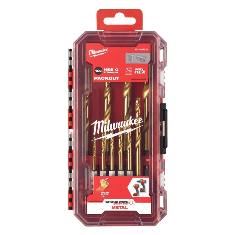 Shockwave HSS-G Tin Red Hex -metalliporanteräsarja iskuluokitelluilla poranterillä ¼″ Hex-varrella iskeville ruuvinvääntimille. Titaaninitridipinnoite hajottaa lämpöä ja tekee poranterästä sopivan käytettäväksi myös suurissa nopeuksissa. Sisältää: ⌀ 3 / 3.5 / 4 / 4.5 / 5 / 6 / 7 / 8 / 9 / 10 mm.