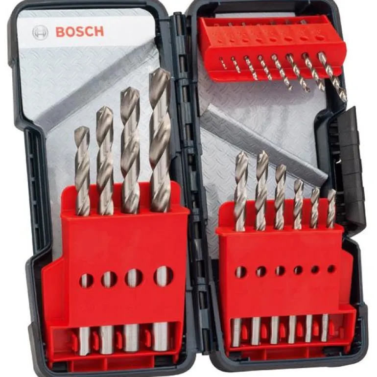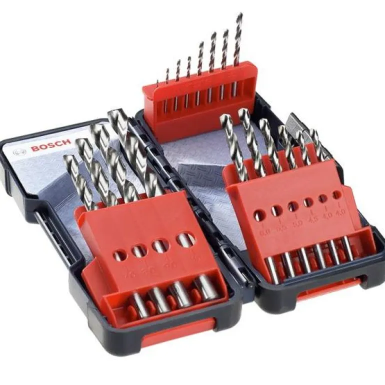 18-osainen HSS-G-metalliporanteräsarja (Ø 1, 1,5, 2, 2,5, 3, 3,5, 4, 4,5, 5, 5,5, 6, 7, 8, 9 ja10 mm) kätevässä pakkauksessa.