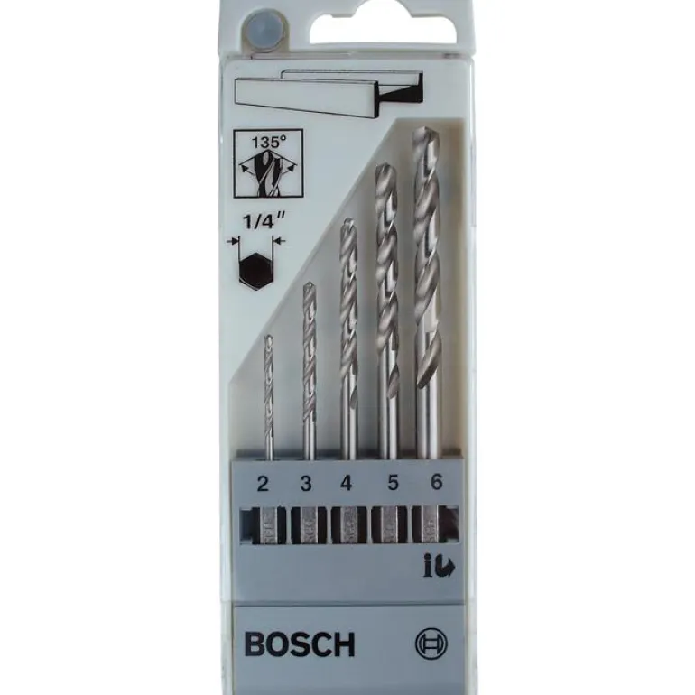 5 poranterää läpimitaltaan 2, 3, 4, 5, 6 mm kätevässä muovirasiassa. Bosch original.