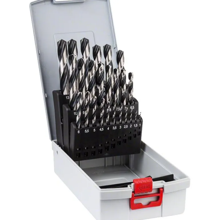 25 kpl HSS-R-metalliporanteriä Ø 1-13 mm käytännöllisessä säilytyslaatikossa. PointTeQ metalliporanterät, porauskärki 135º.