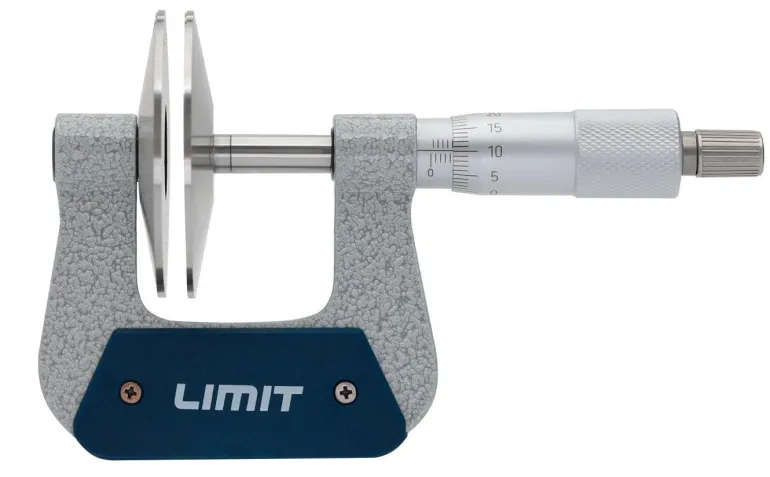 Mikrometri, jossa on 60 mm:n mittauslevyt. Taottu sanka ja mattakromattu asteikko, karkaistu kara 6,5 mm, hienohierretyt mittauspinnat kovametallia. Kitkaholkki. Valmistettu DIN 863 -standardin mukaisesti.