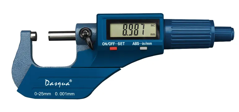 Dasqua 495174 on digitaalinen kaarimikrometri tarkkuushiotulla, karkaistulla ja DIN863-standardin mukaisella mittauskaralla. Lukema millimetreissä ja tuumissa. Mikrometrissä tuntoräikkä (kitkakytkin) ja karan lukitusvipu erinomaisen tarkkaa mittaustulosta varten.