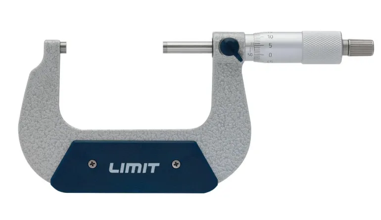 Ulkoiseen mittaukseen tarkoitettu mikrometri, jossa on taottu sanka ja mattakromattu asteikko. Karkaistussa 6.5 mm:n ruuvissa kovametalliset, hienohierretyt mittauspinnat. Kitkaruuvi ja lukitusvipu. Valmistettu DIN 863 -standardin mukaisesti.