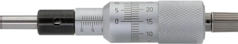 Taottu rakennemikrometri, jossa on kitkarumpu ja kovametallinen mittauspinta. Valmistettu DIN 863 -standardin mukaisesti.