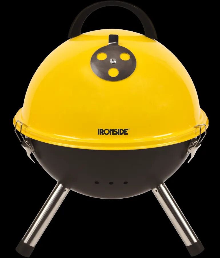 Minigrilli keltaisena/mustana. Grillin leveys on 42 cm.