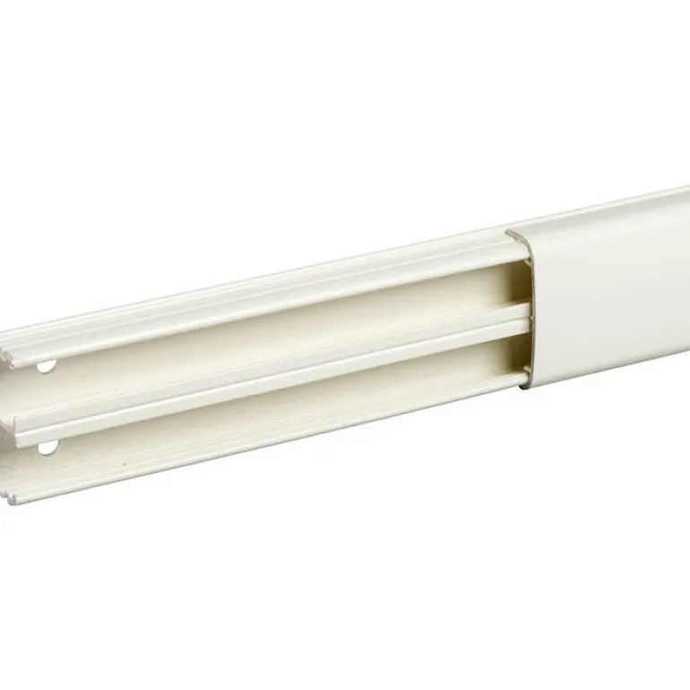 Minikanava PVC:stä, esirei’itetyt asennusreiät 100 mm. Hyväksytty yksinkertaisesti eristetylle kaapelille.
