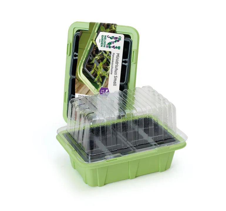 Kätevä minikasvihuone sisältää 2 ruukkusarjaa, joissa on 6 kennoa. Pakkaukseen voi kylvää eri lajikkeiden siemeniä ja koulia eri kasveja tarpeen mukaan. Näin pienoiskasvihuoneen eri osiin saadaan tilaa uudelle kylvölle. Syvät kennolevyt antavat taimille parhaat mahdolliset kasvuolosuhteet vahvan ja hienon juuriston kehittymiselle.