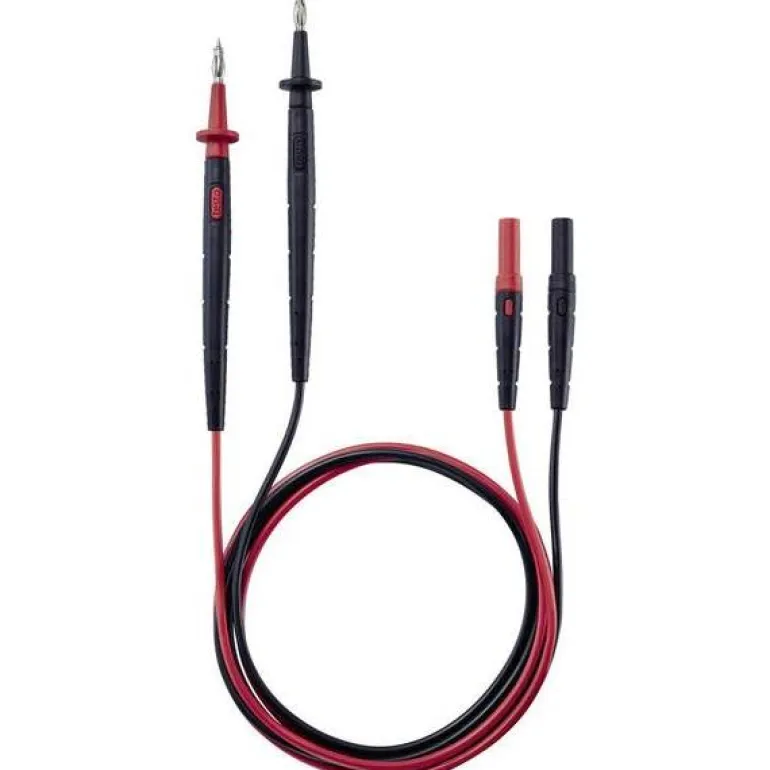 Mittakaapelit, joissa on 4 mm leveä ja 18 mm pitkä kärki ja suora liitin, sähköparametrien turvalliseen ja kätevään mittaamiseen. Voidaan liittää Teston ja muiden tuotemerkkien virtapihteihin tai digitaalisiin yleismittareihin. Pituus 1,25 m.