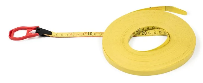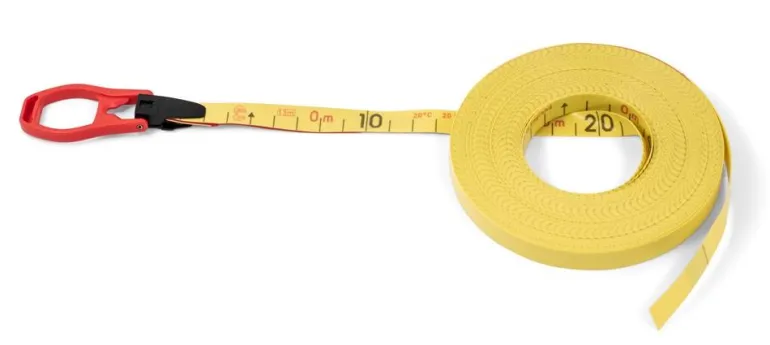 Varahihna pitkälle lasikuitumittanauhalle CC F. Lasikuitunauha on vahva, joustava ja sitä voidaan taivuttaa ongelmitta. Nauha kestää kosteutta, lämpötilavaihteluita ja useimpia kemikaaleja, eikä se johda sähköä.