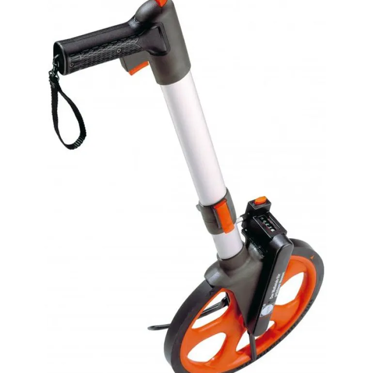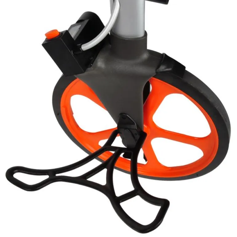 Mittapyörä. Integroitu jarrupainike ja analoginen näyttö, joka näyttää mitat sentteinä ja senttimetreinä. Laskuri on helppo nollata laskurin ikkunan vieressä olevalla painikkeella tai kahvassa olevalla painikkeella.