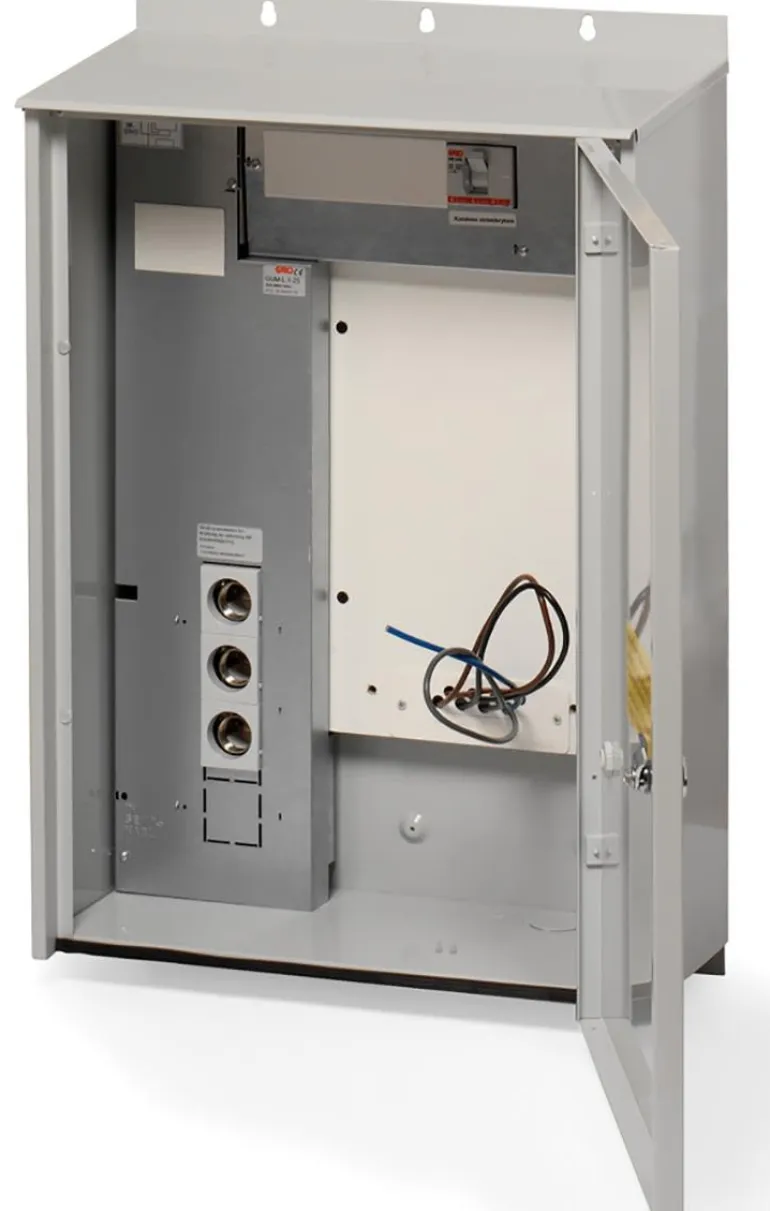 Mittarikaappi pinta-asennukseen. Testattu ja hyväksytty myös IP24-luokkaan lisätiivisteellä, joka on vähimmäisvaatimus pylvääseen kiinnitetyille mittarikaapeille. GUM 1 ja GUM-L toimitetaan kahdella kaapelin läpiviennillä.