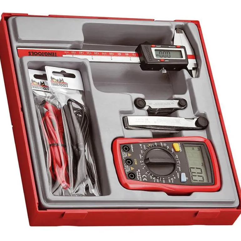 Teng Tools 282710102 on 4-osainen mittaussarja. Sisältää digitaalisen työntömitan 150 mm, kierremittarin M/UNC, rakotulkin 20 osaa ja yleismittarin DM550. Toimitetaan irrotettavalla kannella varustetussa muovilaatikossa.