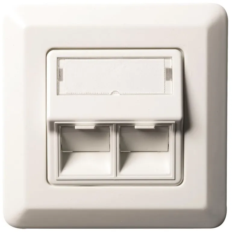 Modulaarinen pistorasia QC STP C6A täydellisissä pistorasiapakkauksissa, jotka koostuvat suojatusta modulaarisesta jakkiliittimestä TCS QuickConnect, kulmamallisesta keskilevystä ja kehyksestä. Helppo ja nopea liitäntä vaatii työkaluja.