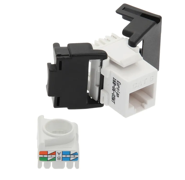 Modulaarinen pistorasia RJ45-liittimellä, vakiomallinen Keystone-aukko, luokka 6. Liitin on hyväksytty jopa 250 MHz:n taajuuksille suurinopeuksisissa sovelluksissa (Gigabit Ethernet).