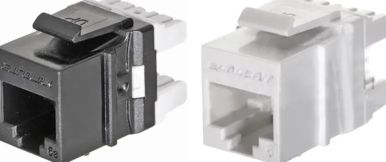 Modulaarinen pistorasia, tyyppi Keyston Cat 6. Eurolan Cat 6 -laajakaistakaapelin liittämiseen pistorasioihin, rasioihin ja paneeleihin. Tämä liitinyksikkö on helppo asentaa, joten se on tehokas ratkaisu useimpiin asennuksiin.