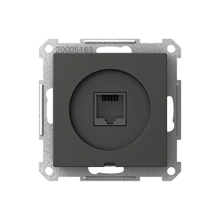 Modulaarinen pistorasia RJ45 (8-nastainen) tasaisella keskilevyllä. Kruunuliitännällä varustetut puhelimet, mukana levytukikehys asennettavaksi kojerasiaan c/c 60 mm.