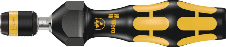 Weran momenttiruuvitaltta. Turvallinen suoja sähköstaattista energiaa ja siihen liittyviä vaurioita vastaan. Vääntömomenttien asetus suurella tarkkuudella. Tarvittavan vääntömomentin asettaminen ilman erillistä erikoistyökalua. Hyvä asteikon luettavuus. Rapidaptor-pikavaihtoteknologia salamannopeaan bits-kärkien vaihtoon. Rajoittamaton irrotusmomentti tiukkojen ruuvien irrottamista varten. Monikomponentti Kraftform-kahva, jossa on kovat ja pehmeät alueet nopeaa työskentelyä varten sekä kämmenen suojaamista varten. Sopii bits-kärjille, joissa on 1/4″ kuusiokantakiinnitys standardin DIN ISO 1173-C 6,3 ja E 6,3 (ISO 1173) mukaan.