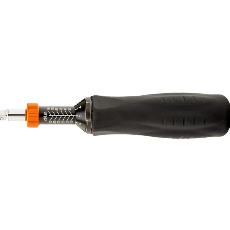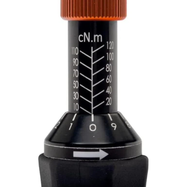 Säädettävä momenttiruuvitaltta, jossa on merkitty asteikko sekä 10-120 cNm momentinmittaus myötäpäivään. Varustettu 1/4″ neliövääntiöllä.