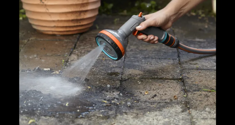 Monitoiminen kastelupistooli, jossa on viisi erilaista suihkumuotoa hienojakoisesta sumusta ja pehmeästä poremaisesta suihkusta pehmeään kasteluun, kovaan pistemäiseen suihkuun ja viuhkamaiseen suihkuun tehokkaaseen puhdistukseen.