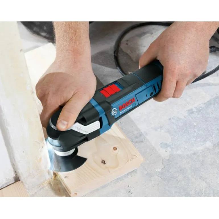 400W:n monitoimikone, jossa Starlock Plus -kiinnitys, säädettävä nopeus ja enimmäiskierrosluku 20 000 kierr./min. Suoriutuu helposti erilaisista materiaaleista, kuten metallista, muovista, puusta, kipsilevystä ja PVC-muovista.