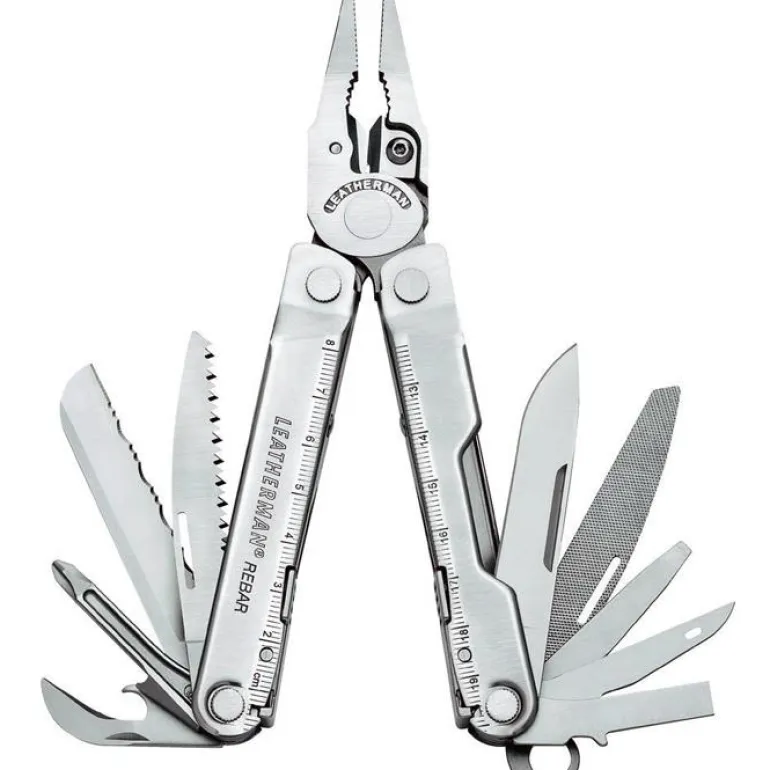 Leatherman Rebar on kätevä, pienikokoinen ja erittäin kevyt monitoimityökalu, joka sopii avaimenperään. Sopii niin ammattilaisille kuin kotitöihinkin. Leatherman Rebar on suunniteltu mahdollisimman vahvaksi, ja sivuleikkureissa on vaihdettavat terät. Pieni ja kätevä työkalu isoihin ja vaativiin töihin. Kärkipihdit, tavalliset pihdit, leikkuri, kaapelinkuorija, veitsi, hammastettu veitsi, saha, silmukallinen naskali, 19 cm:n viivoitin, säilyketölkin avaaja, korkinavaaja, puuviila, metalliviila, ristipääruuvitaltta, iso uraruuvitaltta ja pieni uraruuvitaltta.