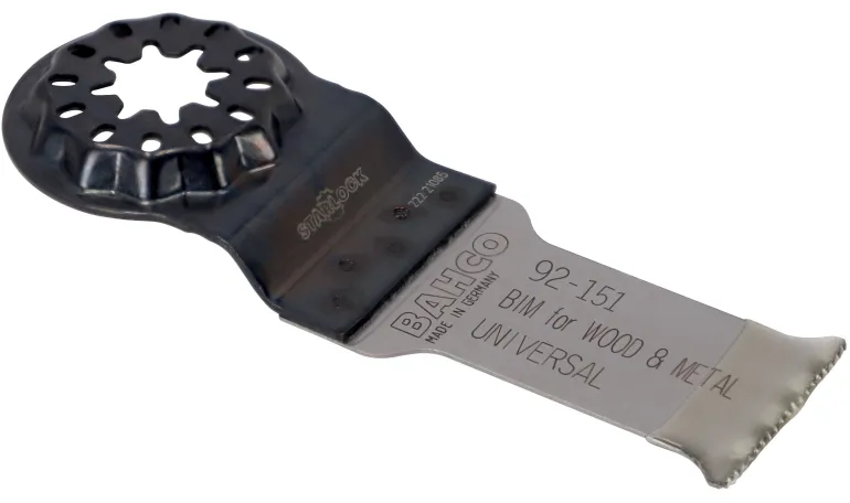 Bahco 92-152 monitoimityökalun Starlock Plus -terä puun ja metallin yleiseen leikkaamiseen. Yleismallinen bi-metalliterä, jossa on aallotettu yleishammastus.
