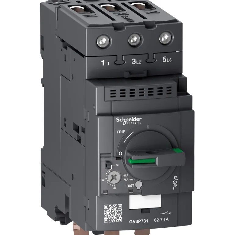 GV3 P on 3-napainen moottorinsuojakytkin, jossa on lämpö- ja magneettisuoja ylikuormitusta ja oikosulkua vastaan. GV3 P tarjoaa koot eri asetusalueille.