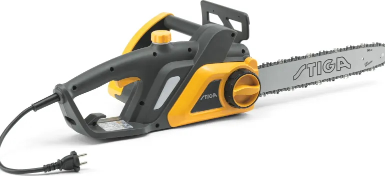 STIGA CS 122c sähkökäyttöinen moottorisaha, joka erittäin tehokkaan 2,2 kW:n moottorin ja laadukkaan 40 cm:n (16 tuuman) laipan ja ketjun ansiosta CS 122c sahaa helposti paksujakin oksia ja runkoja.