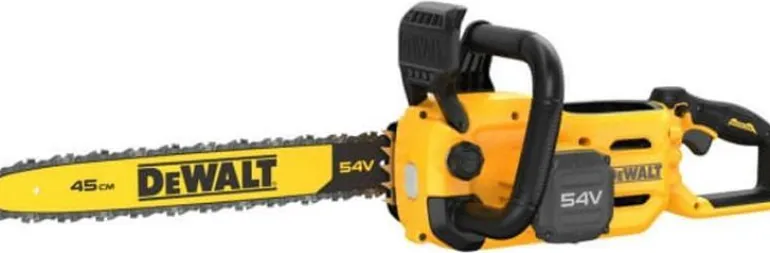 Tehokas 54 V XR FLEXVOLT -moottorisaha. Tehokas hiiliharjaton moottori, 2000 W. 45 cm jopa 70 sahausta 6″x 6″ yhdellä latauksella. 45 cm:n laippa ja ketju nopeaan ja tehokkaaseen sahaukseen. Vastaa bensiinikäyttöistä sahaa 2,7 hv/40 cc. Työkalun kiristys tarkkoja asetuksia varten.