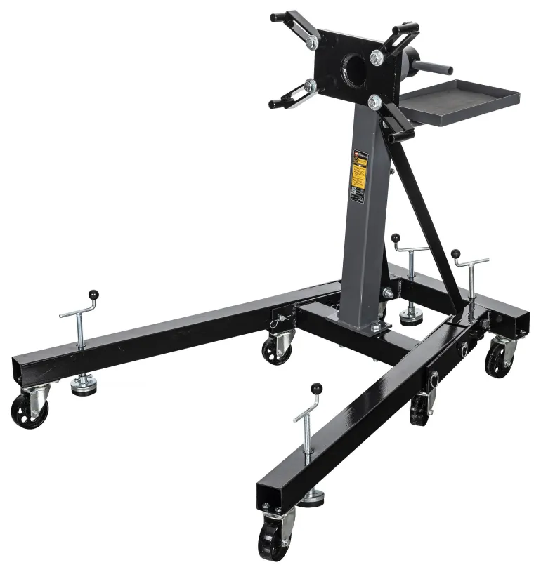 Tukeva moottoriteline, joka kestää 900 kg:n kuormituksen. Taittuvien jalkojen ansiosta teline ei vie paljon tilaa varastoituna.