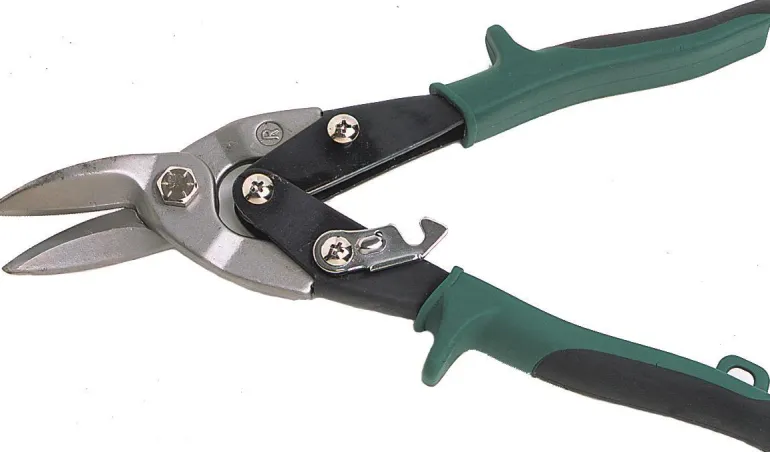 Induktiokarkaistut (HRC 60-62), kevyesti hammastetut terät molybdeeniterästä. Leikkaa peltiä aina 1,2 mm paksuuteen asti. 2-komponenttikahva.