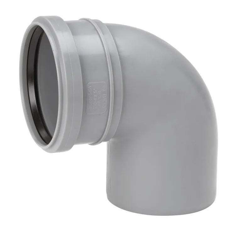 Mutka holkilla ja yleistiivisterenkaalla. Hyväksytty upotettavaksi ja käytettäväksi maahan asennettuna tonttiviemärinä.