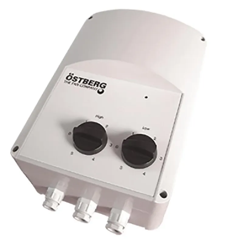 VRDE vaihtovirtamoottoreille. Manuaalinen viisiportainen muuntaja suurella/pienellä nopeudella. Manuaaliseen jänniteohjaukseen kahdella eri nopeudella, kummassakin viisi kiinteää jännitetasoa ja 0-asento. Jännitteellä säädettävien yksivaihemoottorien nopeuden säätöön. Kytkentä tapahtuu potentiaalittomalla koskettimella, esim. kellokytkin, termostaatti, hygrostaatti jne. Tukeva PVC-kotelo. Taajuus: 50 tai 60 Hz.