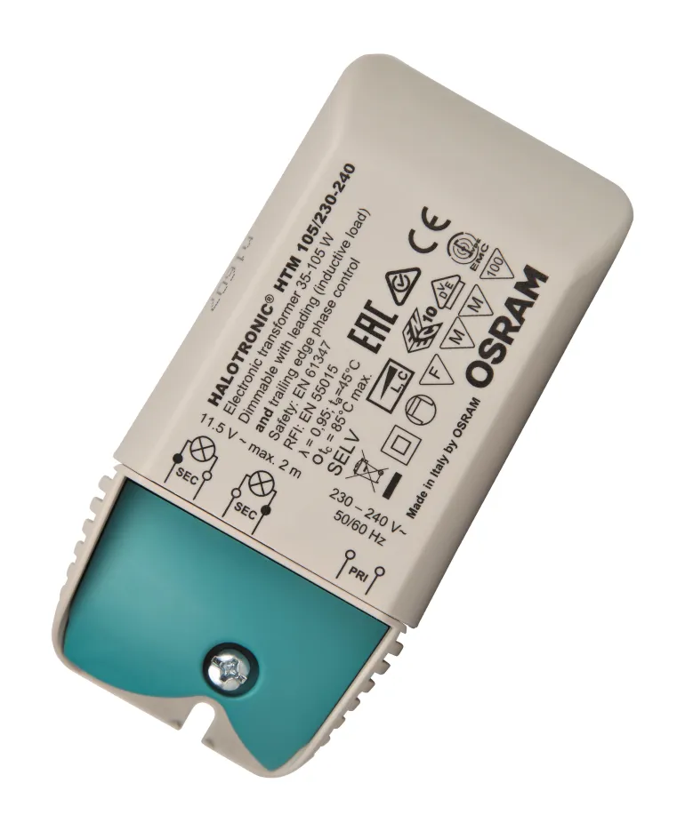 Osram Halotronic-Compact on muuntaja, jossa on sisäänrakennettu oikosulku-, ylikuormitus- ja ylikuumenemissuoja automaattisella nollauksella. Himmennykseen voidaan käyttää sekä takareunan himmennintä (transistorihimmennin) että etureunan himmennintä (tyristorihimmennin).
