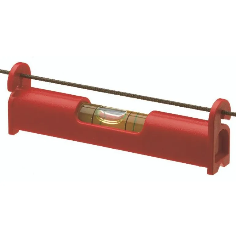 Iskunkestävästä muovista valmistettu naruvesivaaka, jonka molemmissa päissä on libelli ja koukut. Ripusta vaaka kiristettyyn nauhaan pystyäksesi tarkistamaan kaltevuuden kahden pisteen välillä.