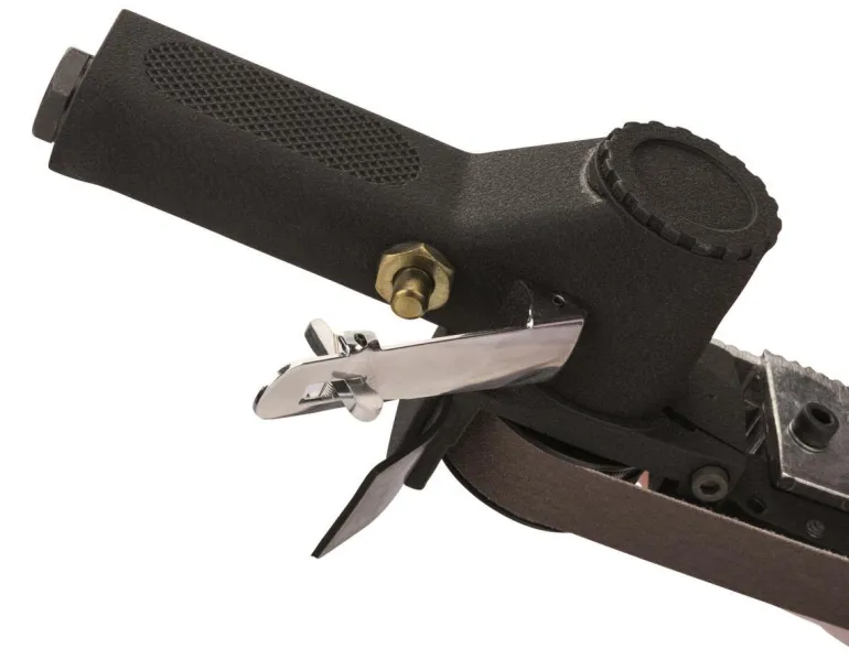 Nauhahiomakone, jonka työpaine on 6,3 bar, 20×520 mm hiomanauha ja kierrosluku 16000 kierr./min.