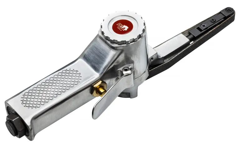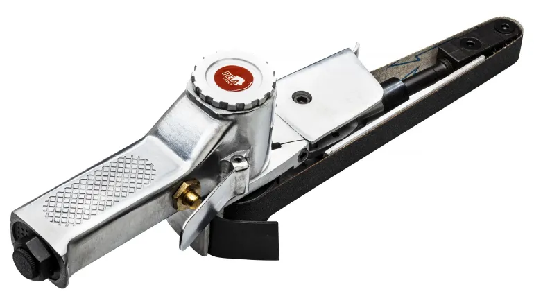 Pela 510975 on korkealaatuinen paineilmakäyttöinen nauhahiomakone käännettävällä hiomavarrella. Erinomainen hiontaan ja purseenpoistoon vaikeapääsyisissä paikoissa.