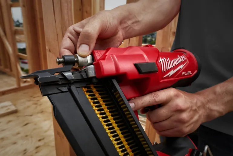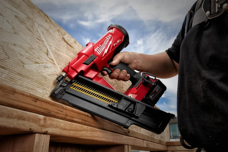 M18 FUEL runkonaulain. Tuottaa parhaan tehon, mikä iskee naulat kovapuuhun tasaisesti.