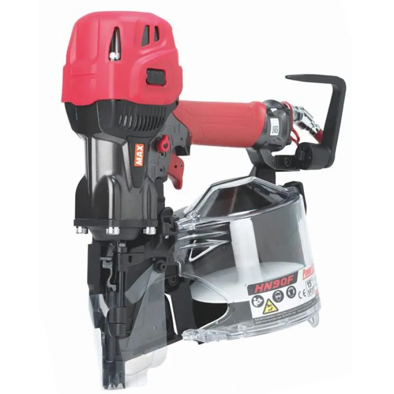 MAX HN90F on naulain 16°:n nauloille, lankasidottujen naulojen pituus 45-90 mm, muovisidotut litteät rullat 45-75 mm. Tehokas ja tasapainoinen, säädettävä syvyys ja kaksoislaukaisun estomekanismi. Lippaan kapasiteetti 300 naulaa.
